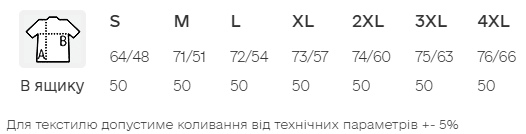 Футболка унісекс з круглою горловиною. Щільність - 185 г/м.кв. Матеріал - джерсі (одноколірні - 100% бавовна). Кольорова гама - 21 відтінків. Без бокових швів. Фасон - прямий, європейський стиль. Укріплююча тасьма від плеча до плеча. Подвійний плечовий шов, подвійна строчка на горловині. Горловина - рібана (резинка) висотою 1,9 см, виглядає на футболці дуже гармонічно. Не змінює колір та не "сідає" у процесі носіння та прання. Бірка з перфорацією, за потреби можна відірвати.